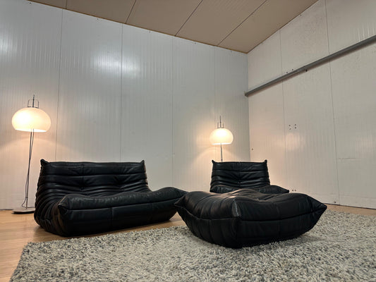 NIEUW Ligne Roset Togo Set Zwart Leer 2-Zits + 1-Zits + Poef