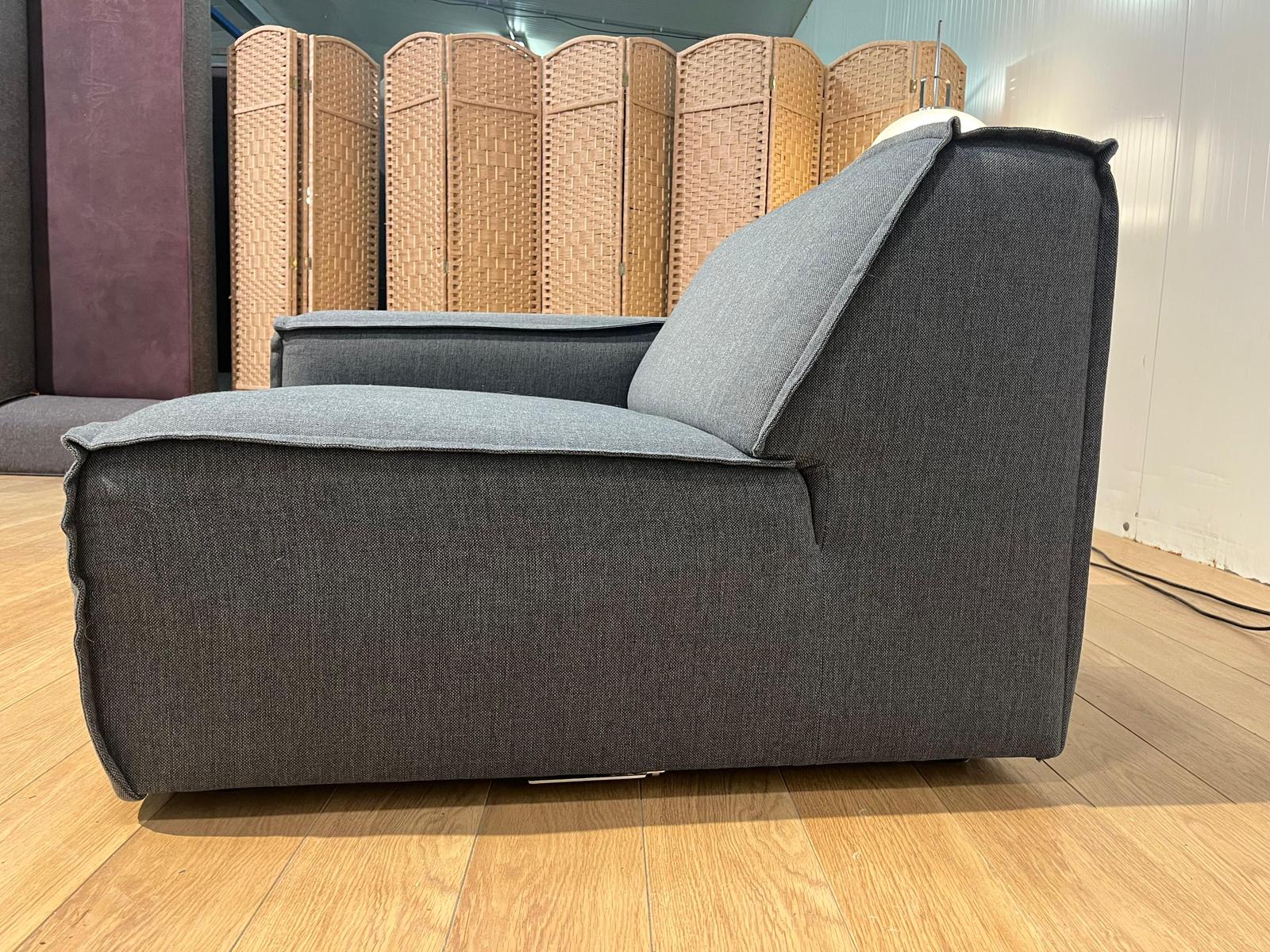 Stijlvol Fest Amsterdam modulair element in lichtblauwe stof. Dit onderdeel kan gebruikt worden als losse fauteuil of met behulp van de originele Fest-beugel worden vastgeklikt aan een ander element — ideaal voor wie zijn modulaire bank wil uitbreiden of aanpassen.