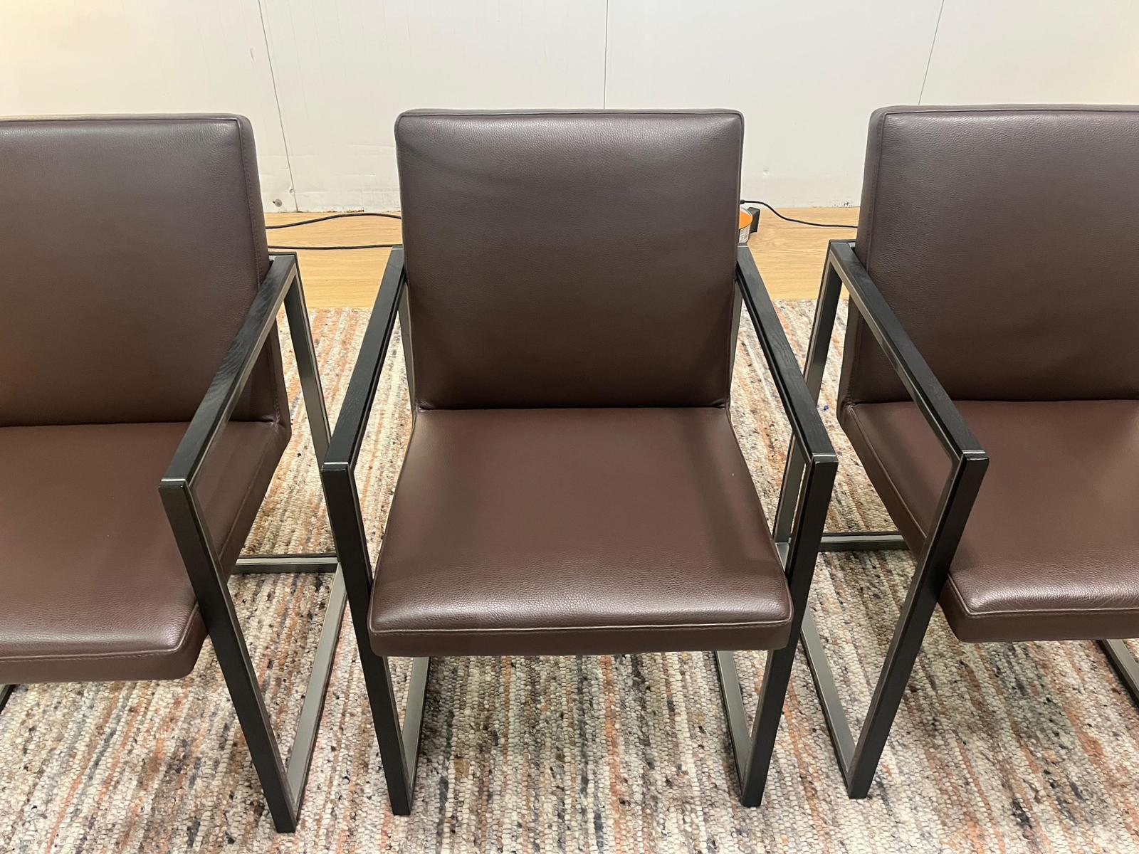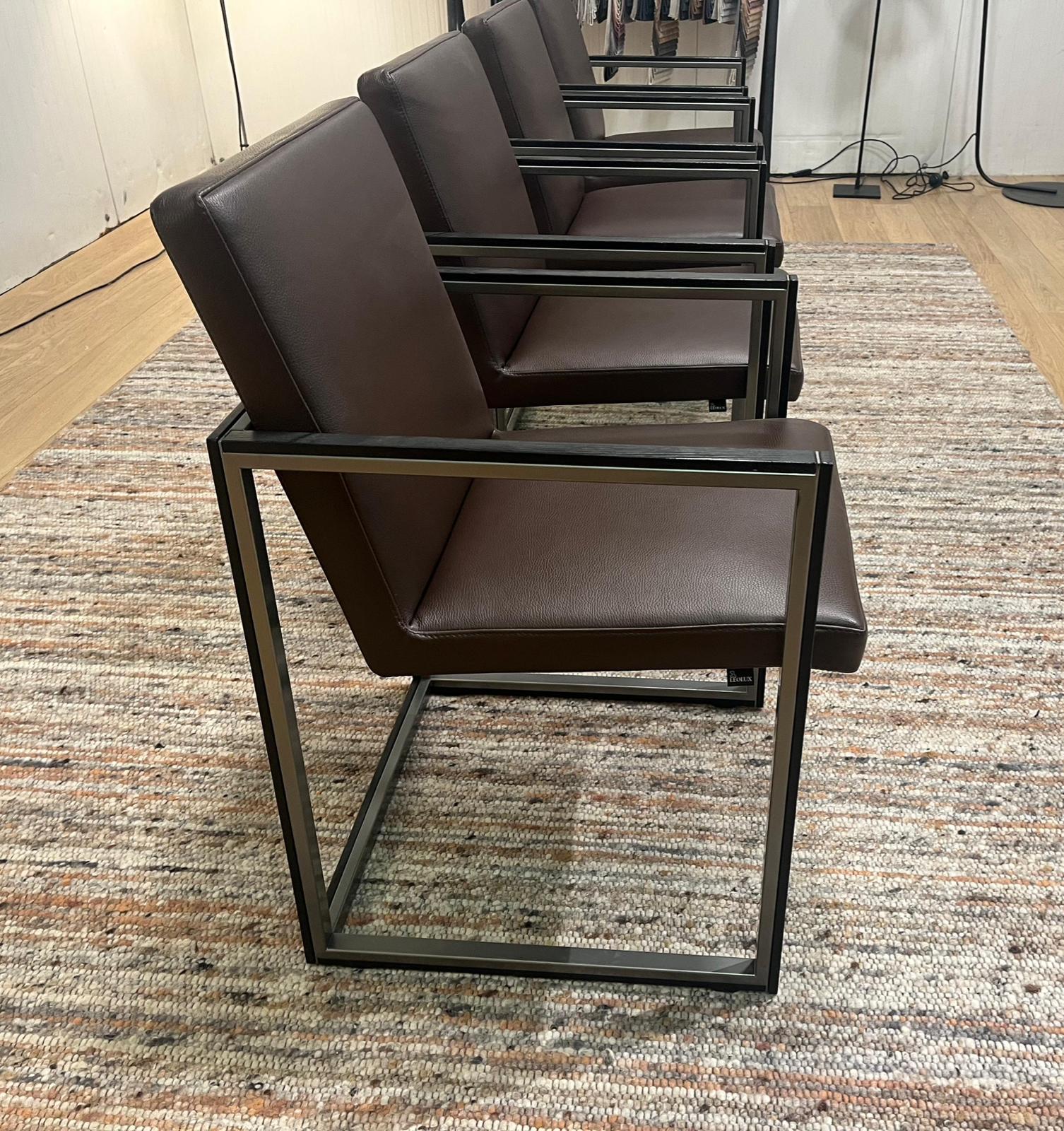 Prachtige set van 4 originele Leolux Window eetkamerstoelen, uitgevoerd in bruin leder.