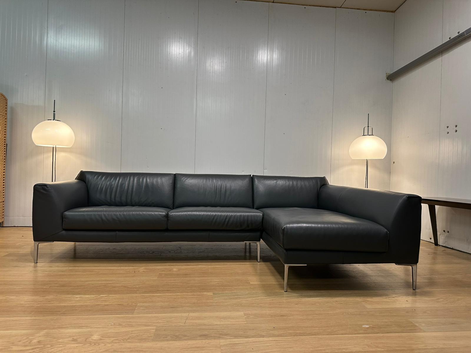 Prachtige Pode Fold hoekbank uitgevoerd in donkergrijs leer, met een nieuwprijs van €8.500. De bank verkeert in nieuwstaat, is professioneel gereinigd en afkomstig uit een rookvrije en diervrije omgeving.