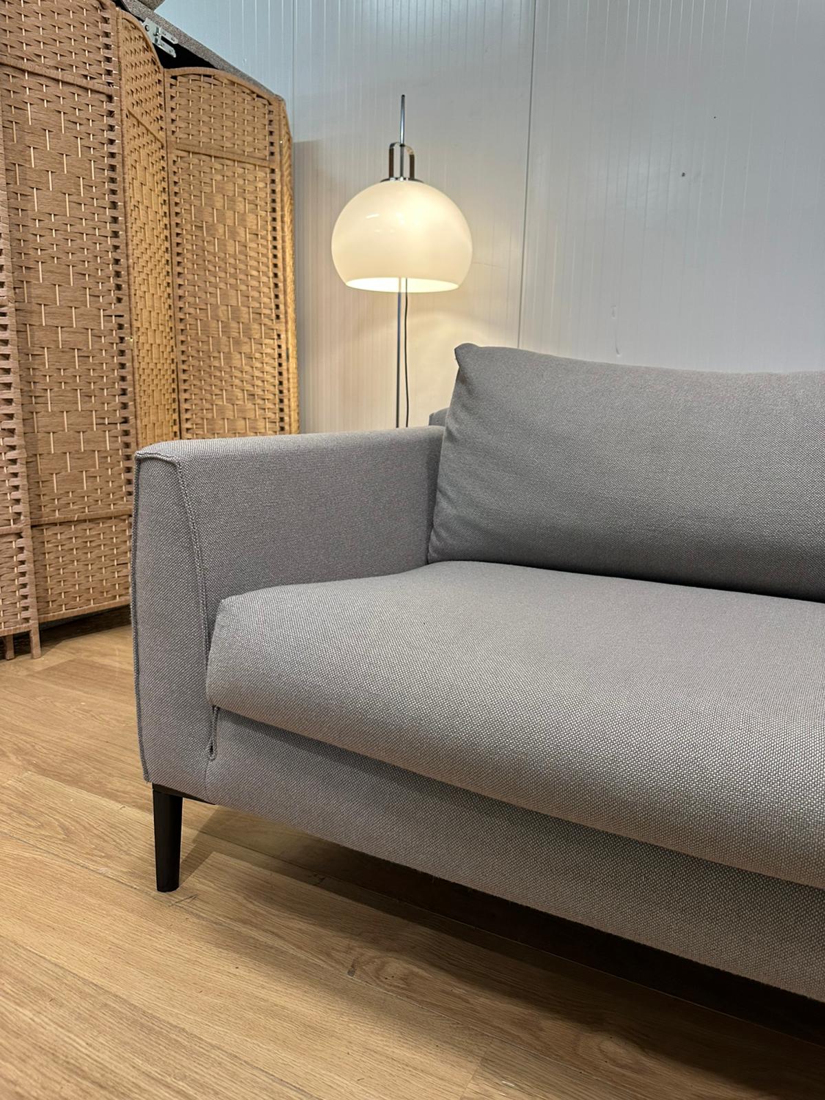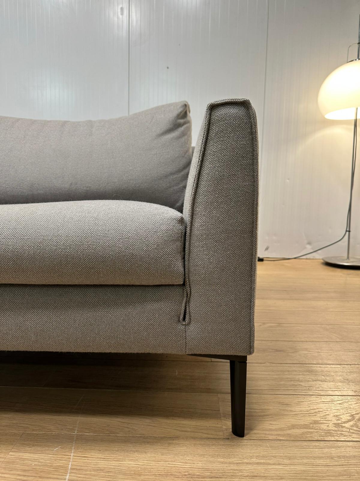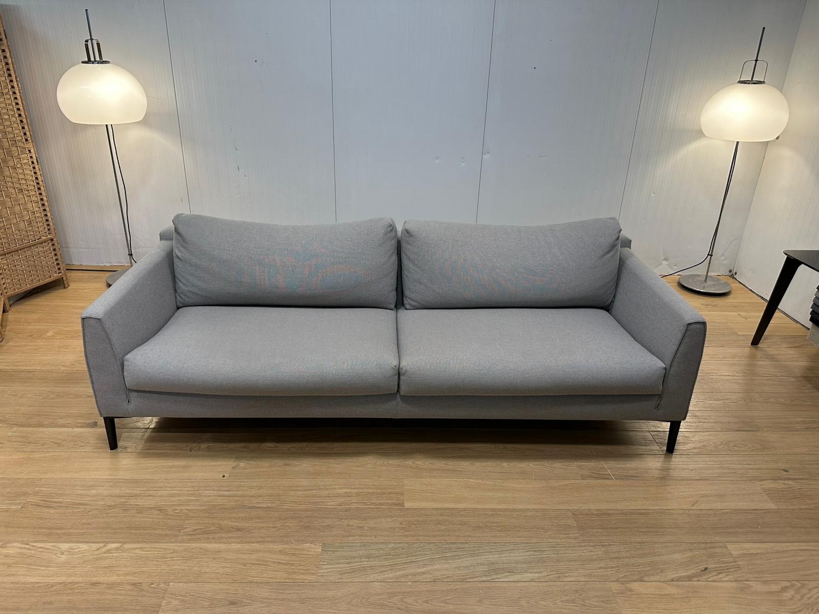 Prachtige Design on Stock Heelz 3-zits bank, uitgevoerd in hoogwaardige lichtgrijze Ploegwol. De Heelz staat bekend om zijn strakke belijning, slanke poten en comfortabele zit.