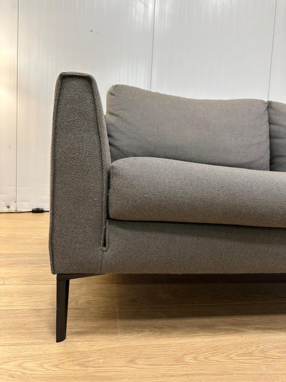 Prachtige Design on Stock Heelz 2-zits + 3-zits bank, uitgevoerd in hoogwaardige Ploegwol in lichtgrijs (3-zits) en donkergrijs (2-zits). De Heelz staat bekend om zijn strakke belijning, subtiele pootconstructie en comfortabele zit.