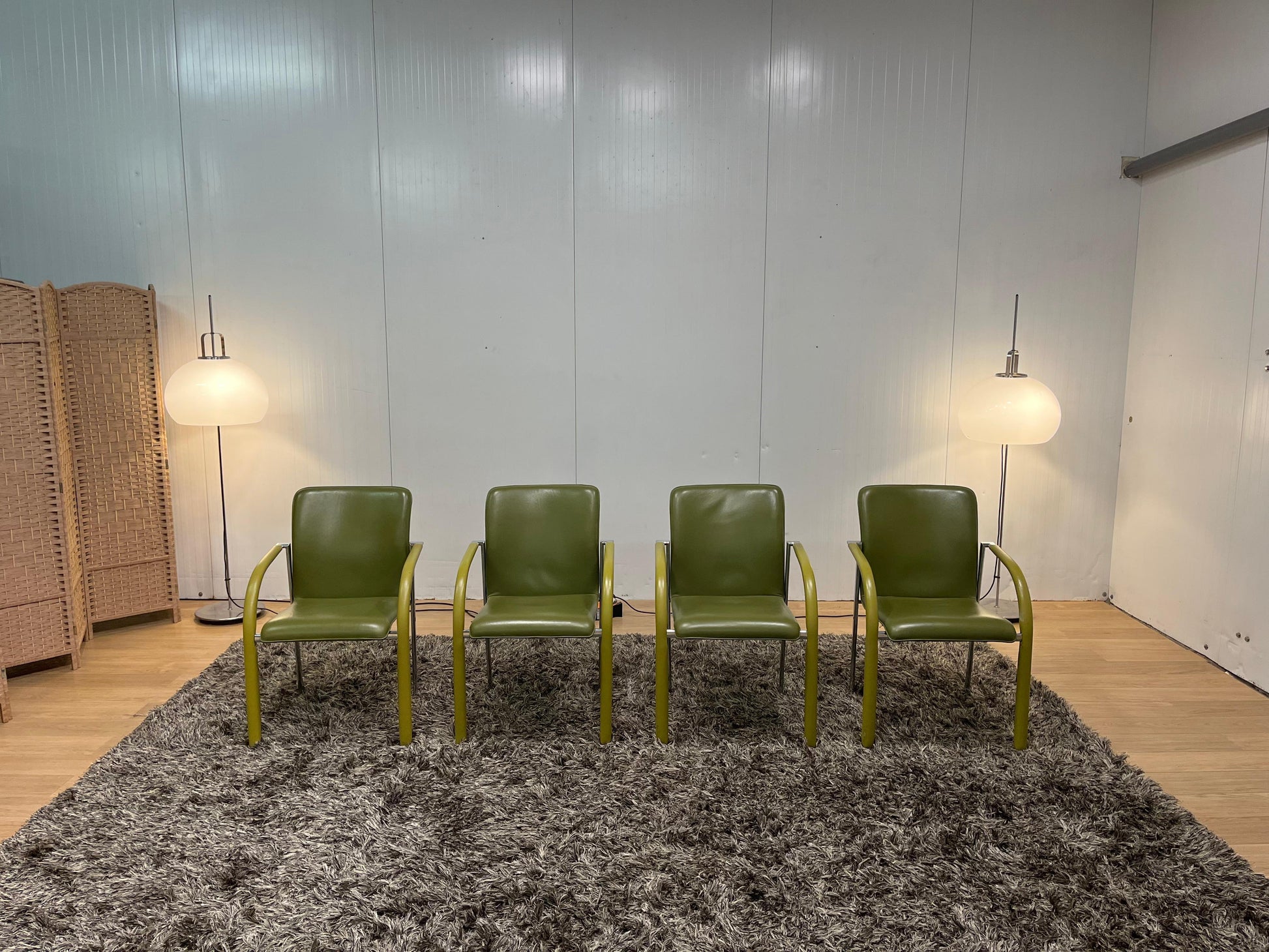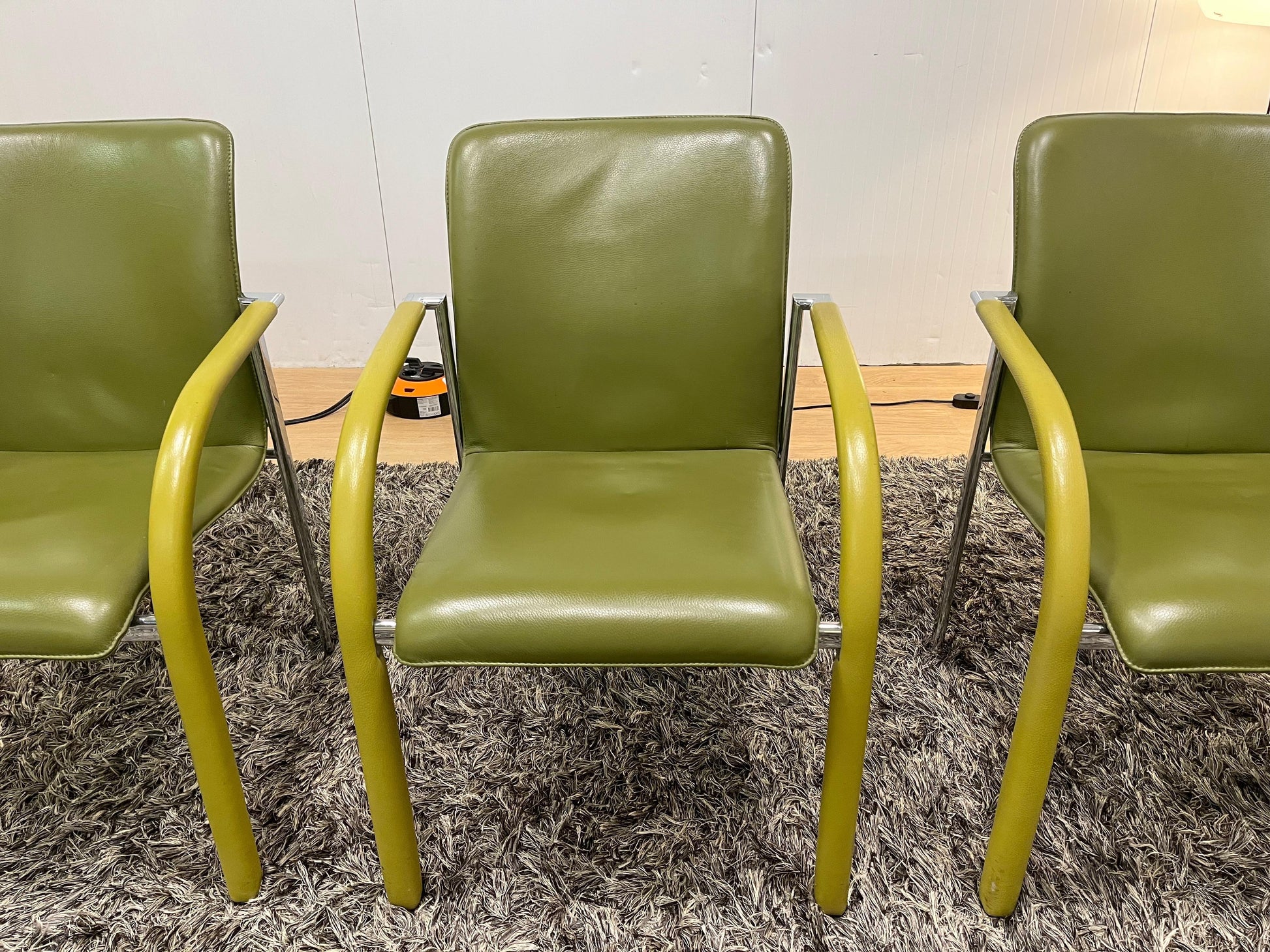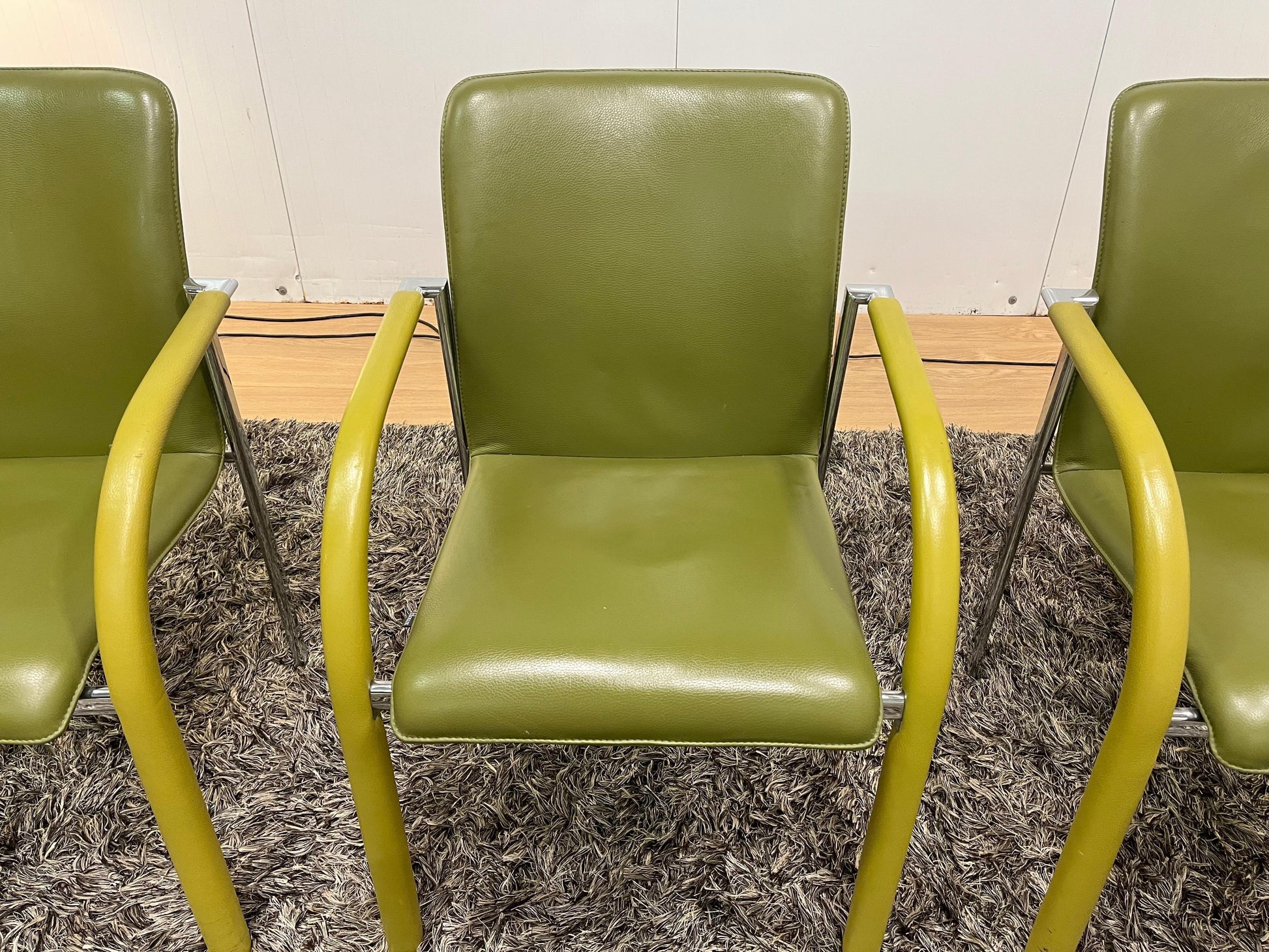 Prachtige set van 4 Leolux Cimaronne eetkamerstoelen in stijlvolle groene kleur. De stoelen verkeren in zeer goede staat (ZGAN) en bieden zowel comfort als kwaliteit ā precies wat je van Leolux mag verwachten. Ideaal voor aan een design eettafel of als luxe vergaderstoelen.
