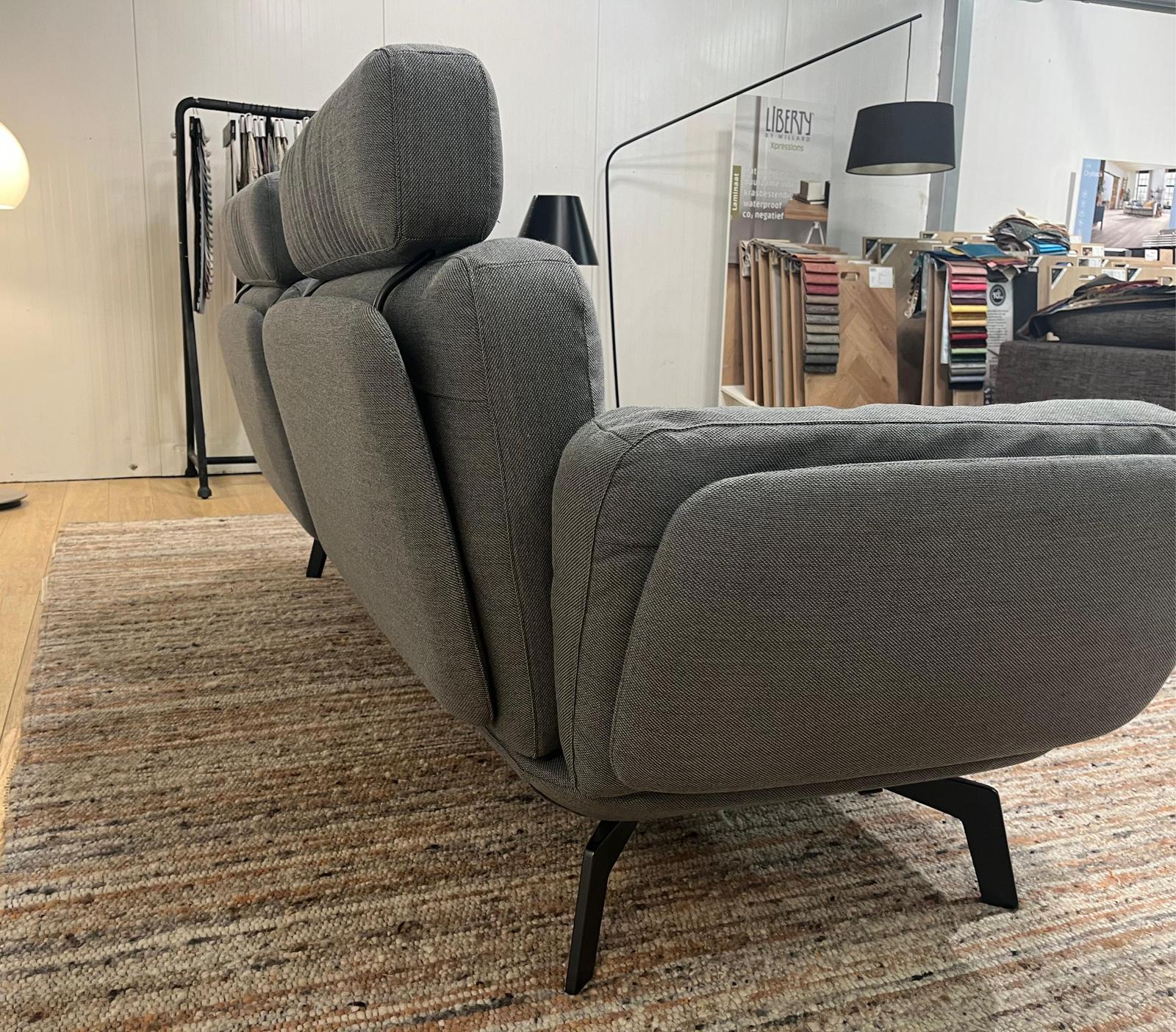 Zo goed als nieuwe Leolux Nardo 3-zitsbank, uitgevoerd in de hoogwaardige stof Steelcut Trio 3 en voorzien van twee losse originele hoofdsteunen.