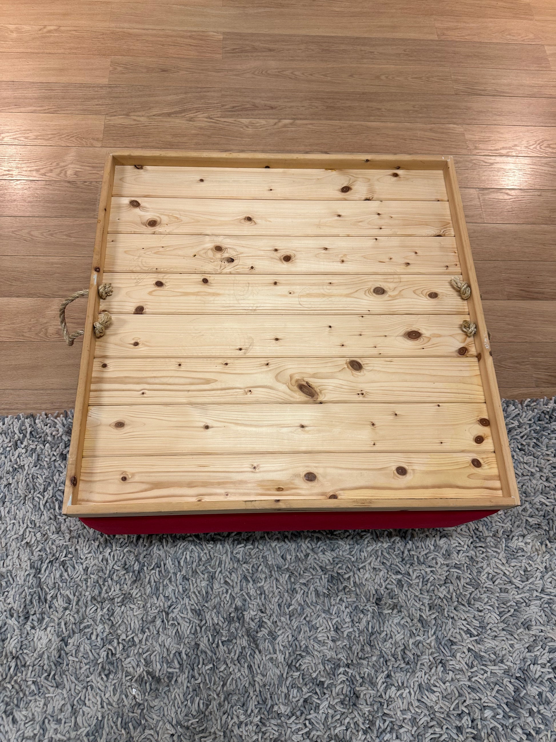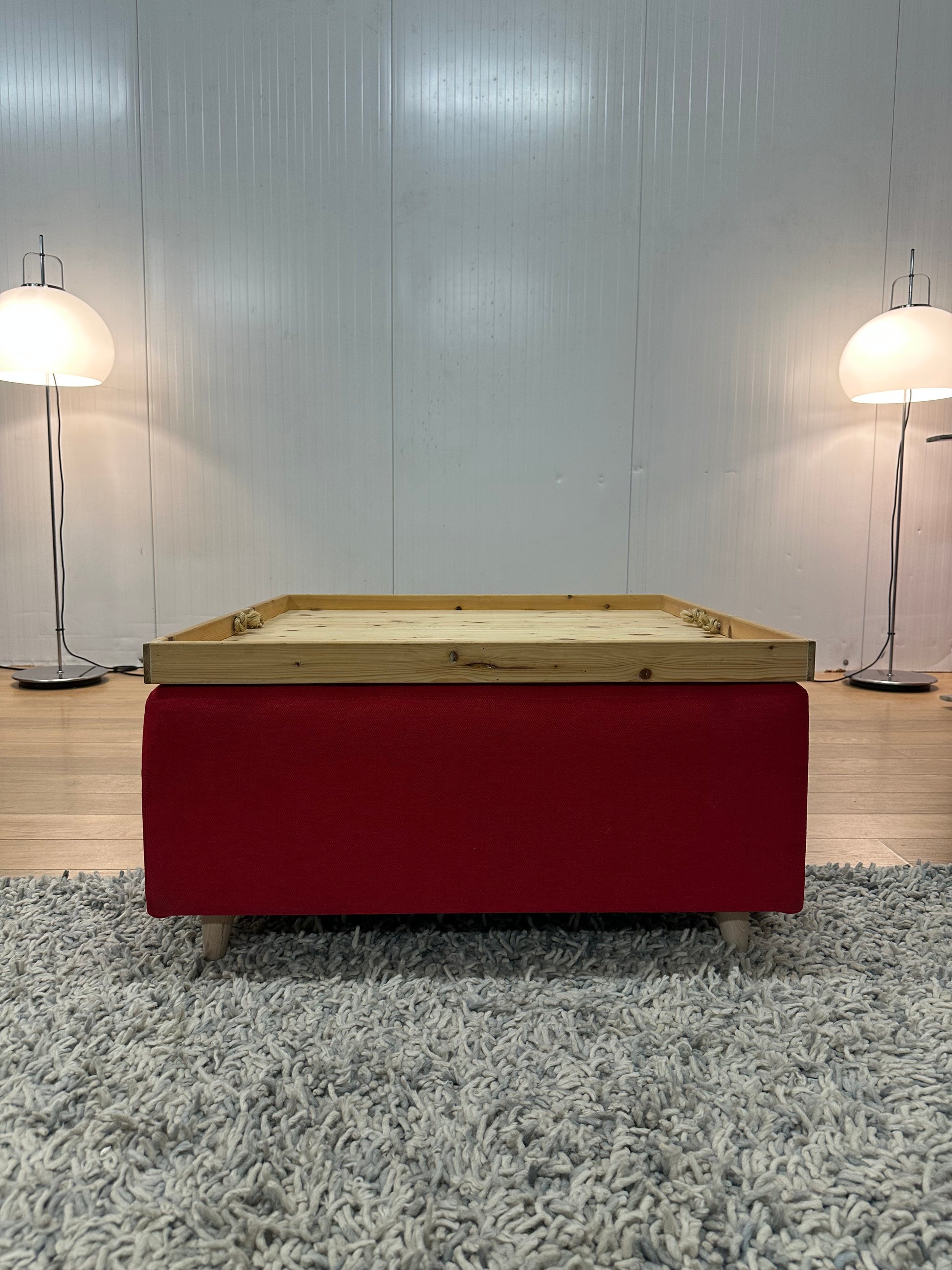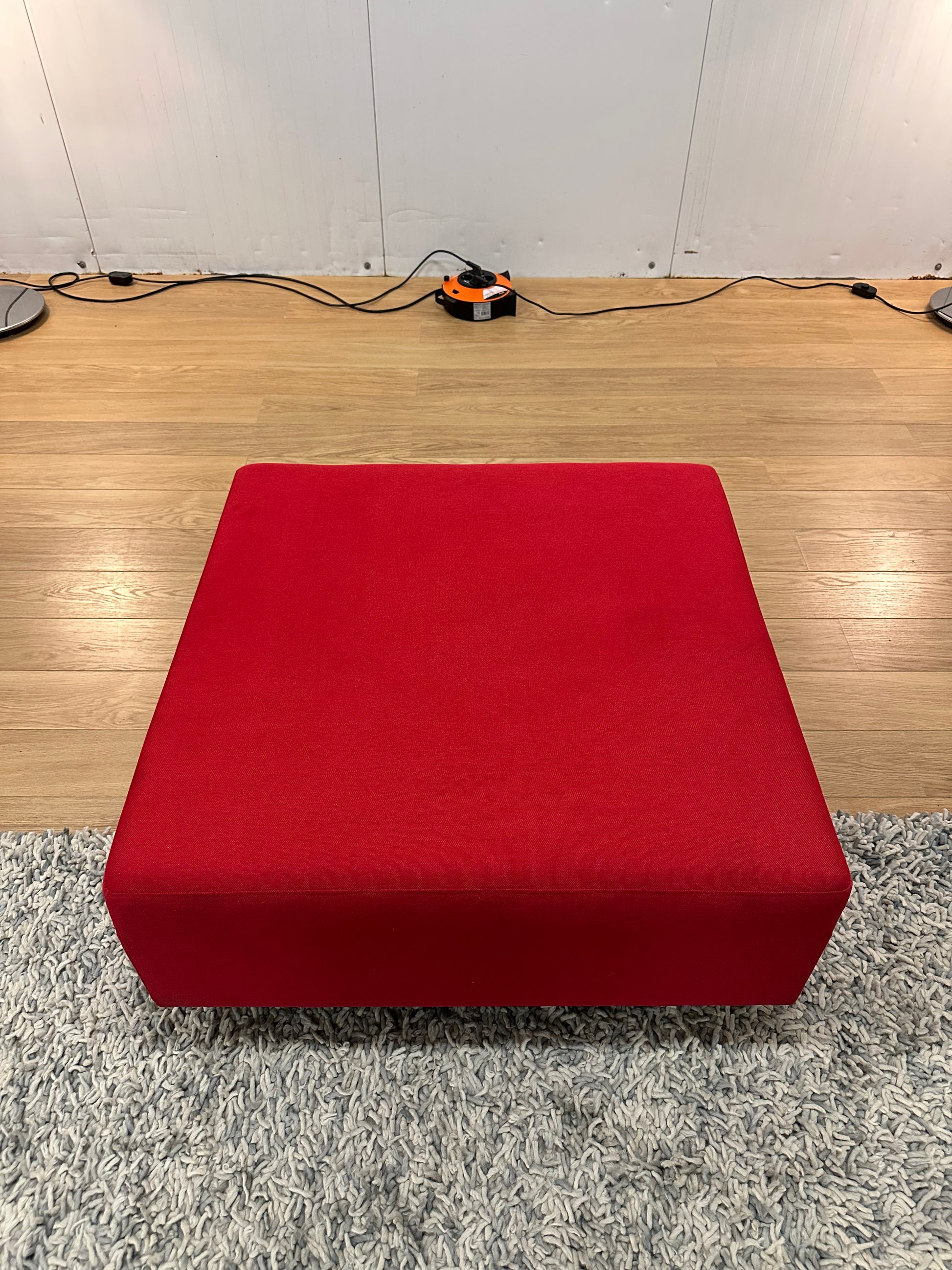 Stijlvolle design hocker van Zitmaxx, uitgevoerd in een moderne rode stof. Wordt geleverd met een op maat gemaakt dienblad, ontworpen door Hornehome, waardoor de hocker ook als salontafel gebruikt kan worden. Een veelzijdig en elegant meubelstuk voor elk interieur. Afkomstig uit een rookvrij en diervrij huis.
